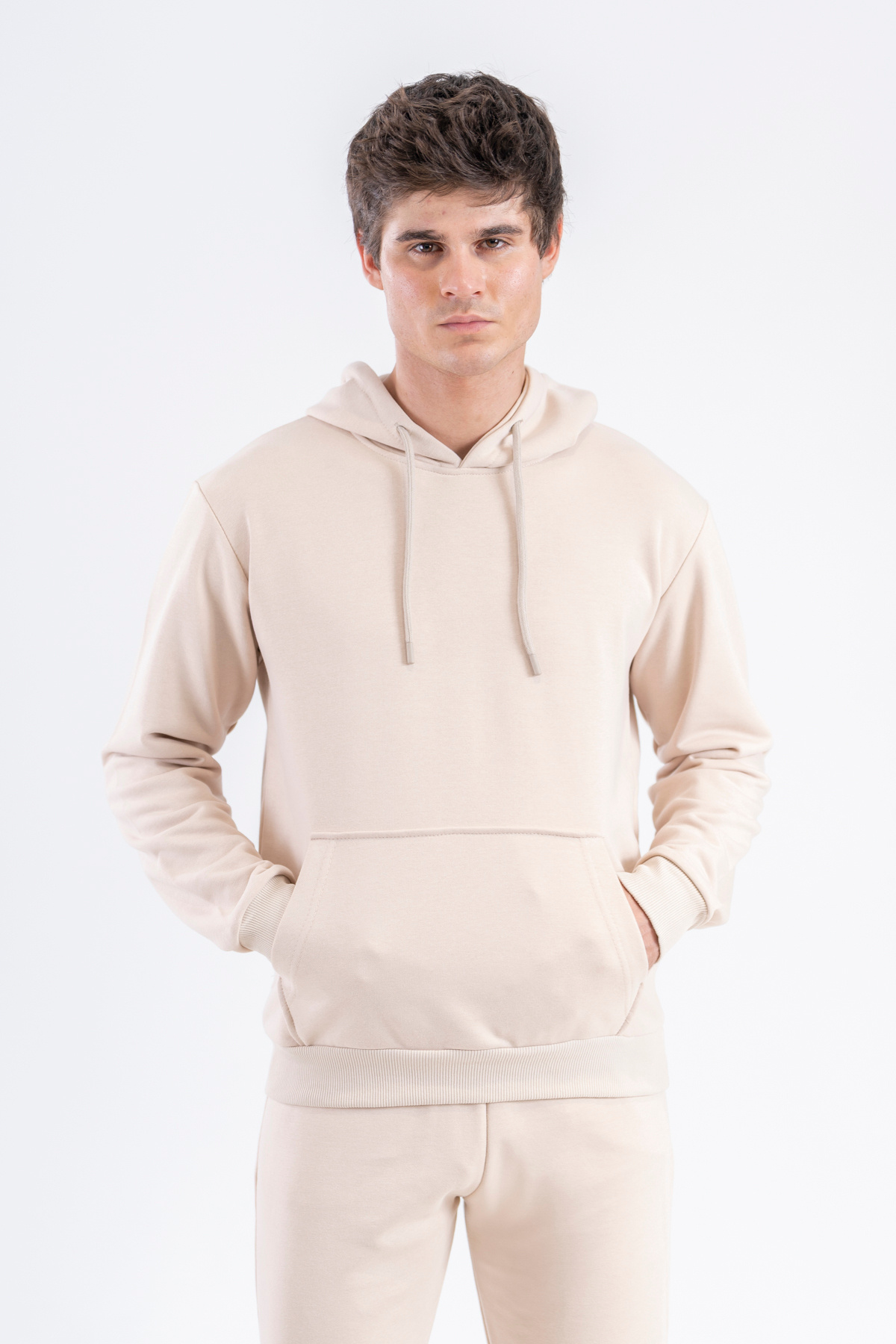 Gmesg Erkek Kapüşonlu Sweatshirt – Uzun Kollu, Üç İplik, Cepli, Rahat Kalıp - Bej