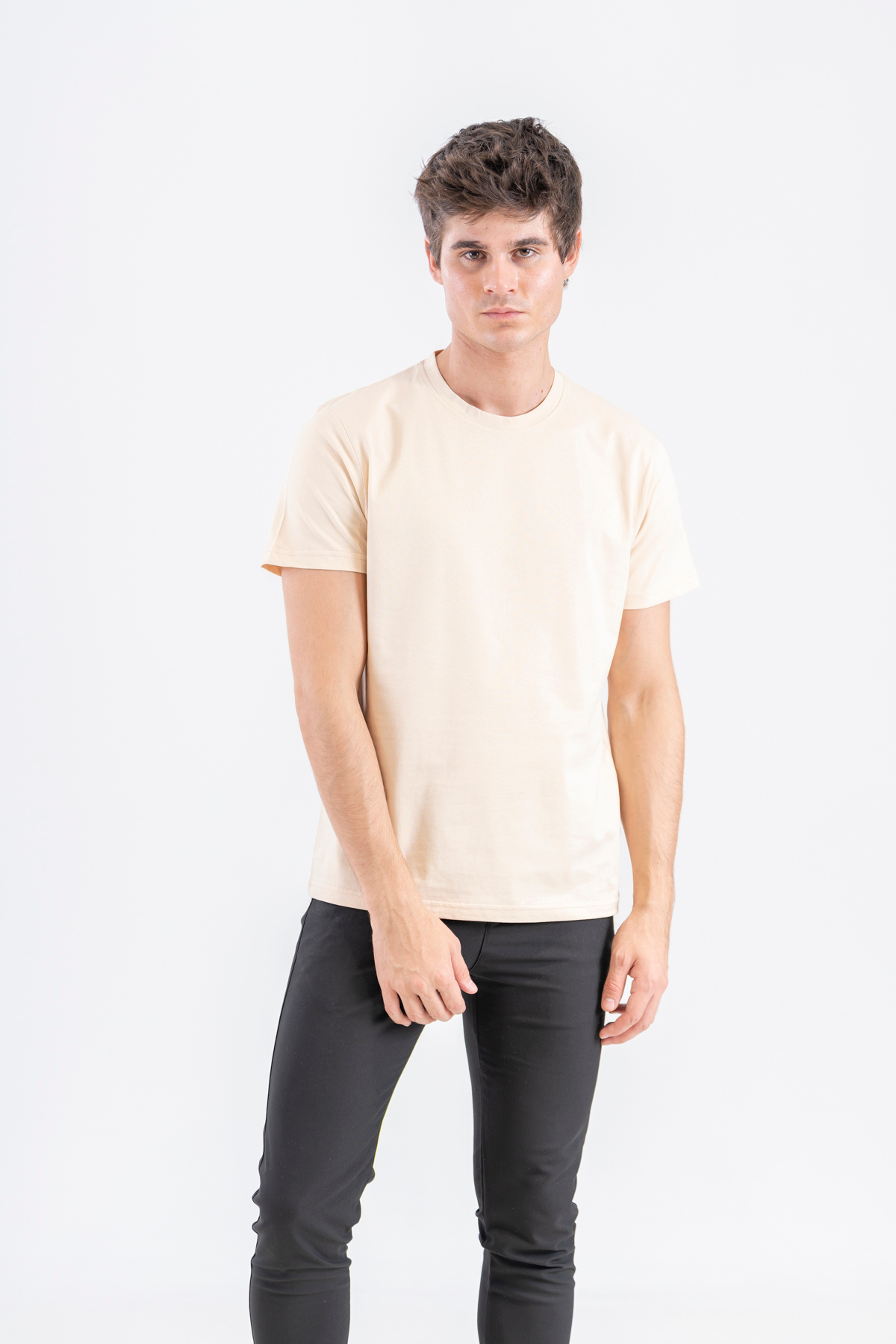 Gmesg Erkek Basic Tişört – Kısa Kollu, Düz Model, %100 Pamuk, Suprem Kumaş - Bej