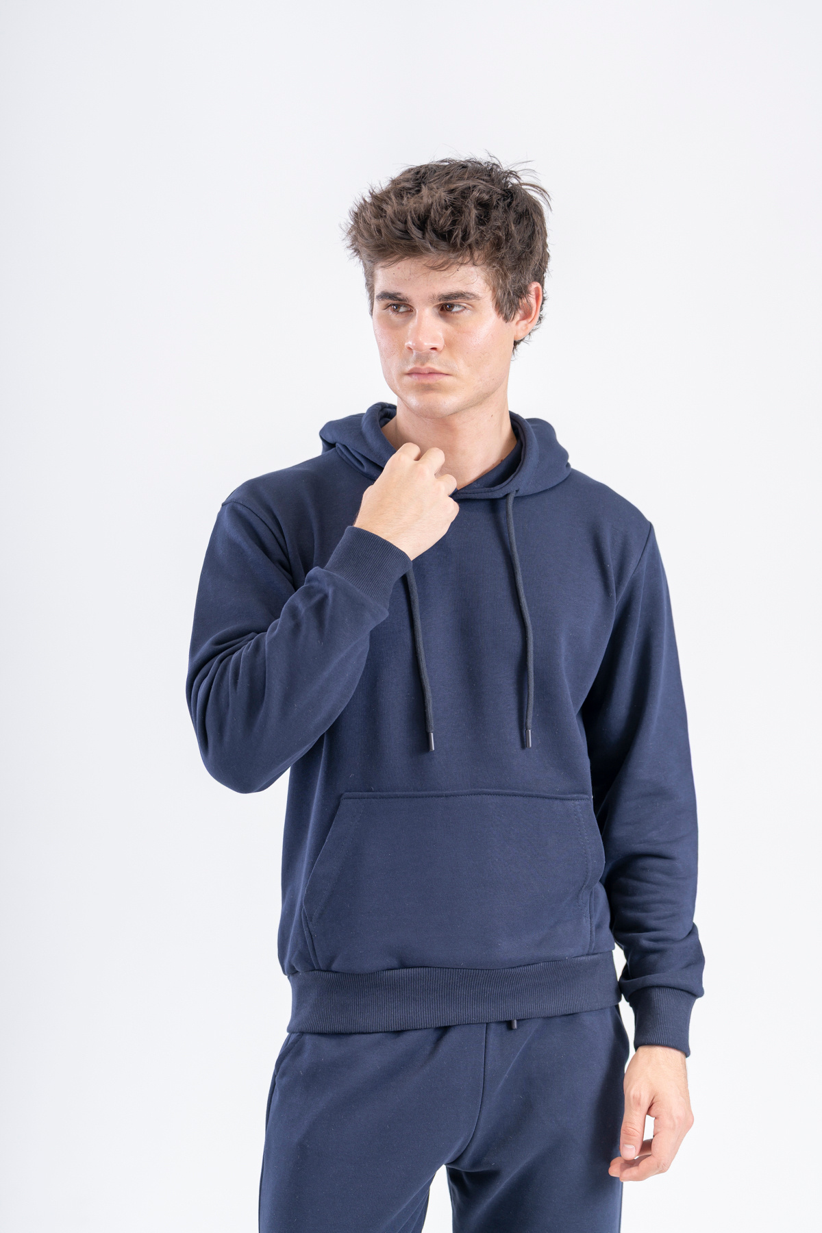 Gmesg Erkek Kapüşonlu Sweatshirt – Uzun Kollu, Üç İplik, Cepli, Rahat Kalıp - Lacivert