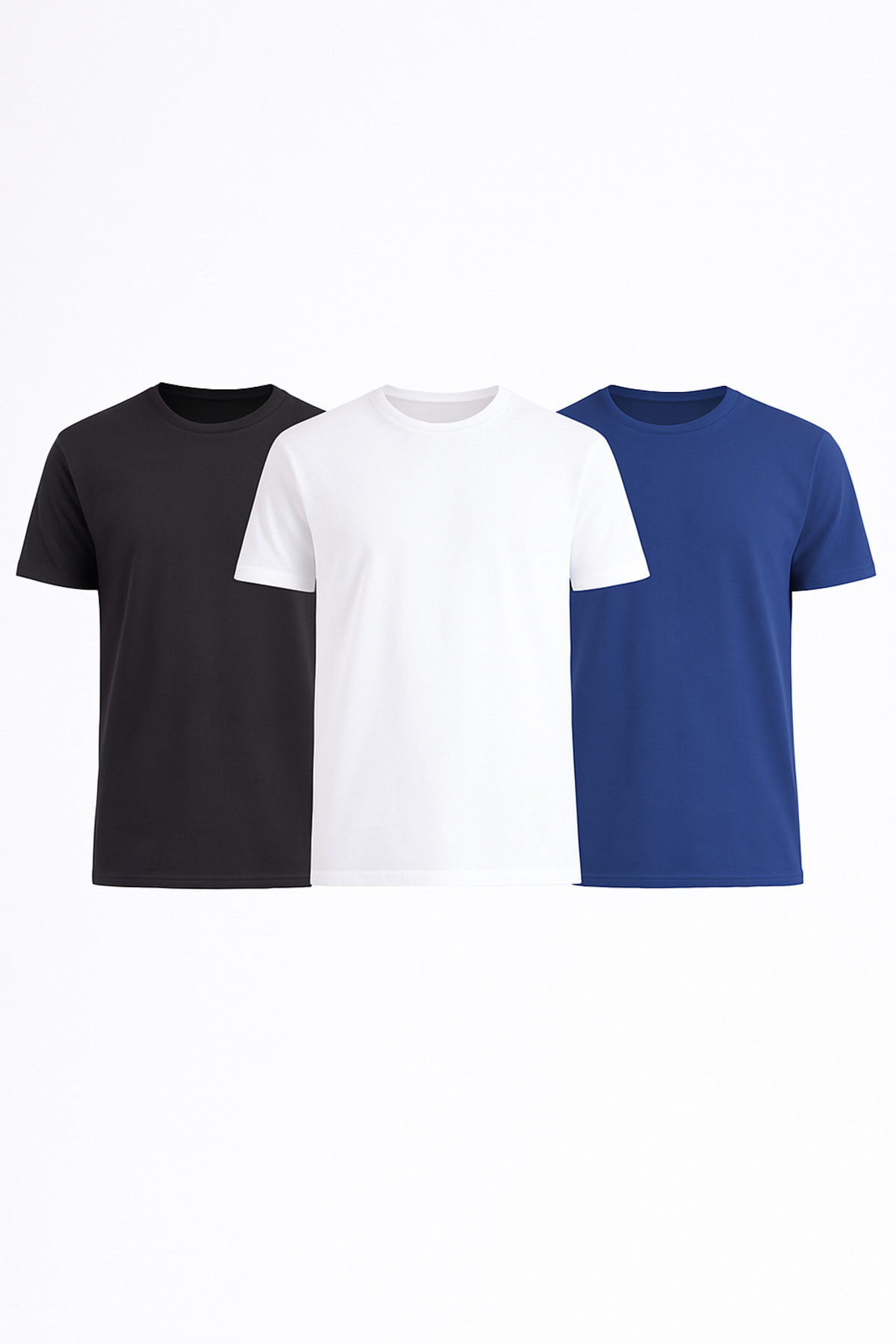 GMESG Erkek 3’lü Basic T-Shirt Seti – Siyah Beyaz İndigo – %100 Pamuk Suprem Kumaş