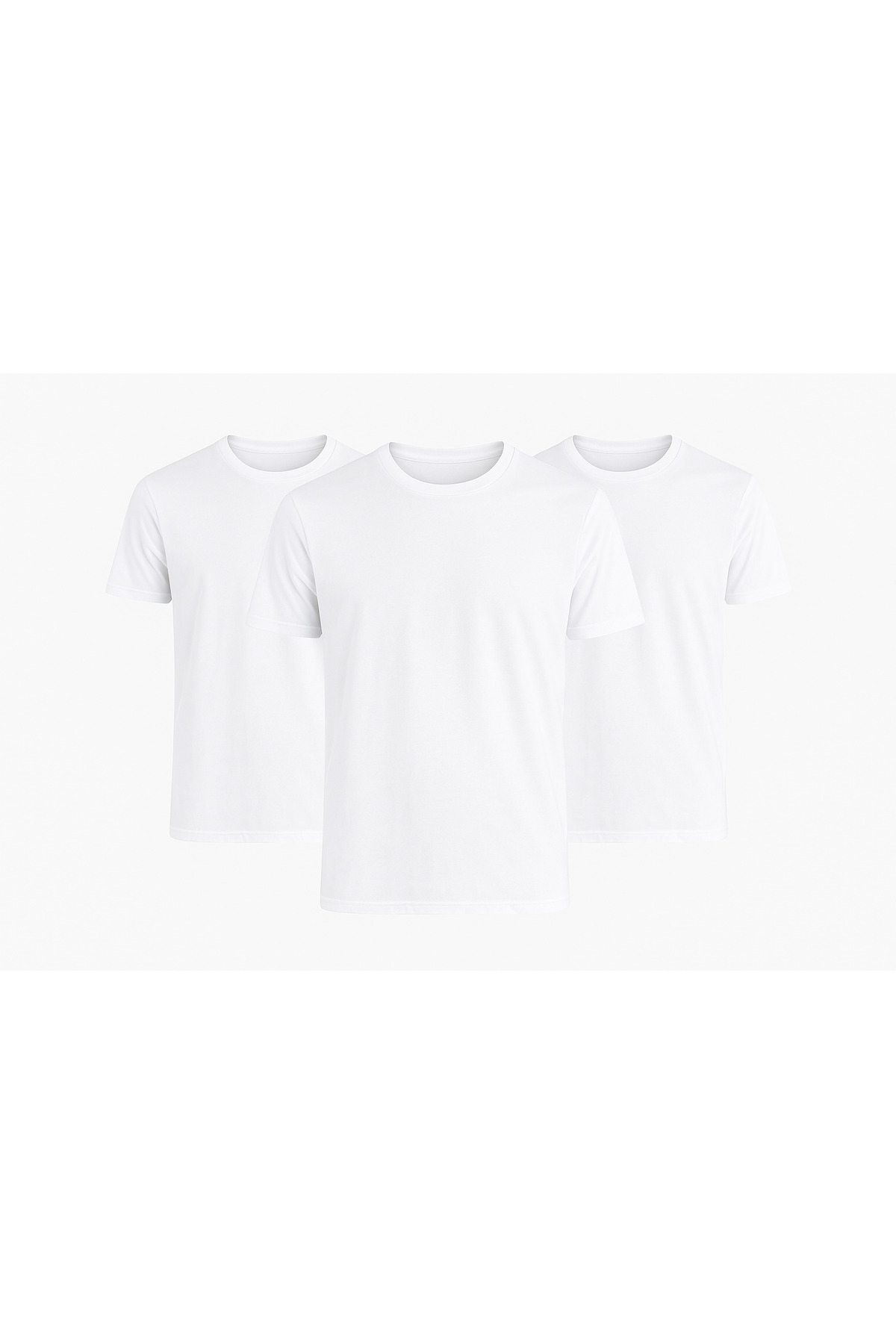 GMESG Erkek 3’lü Basic T-Shirt Seti – Kısa Kollu Düz Beyaz %100 Pamuk Suprem Kumaş