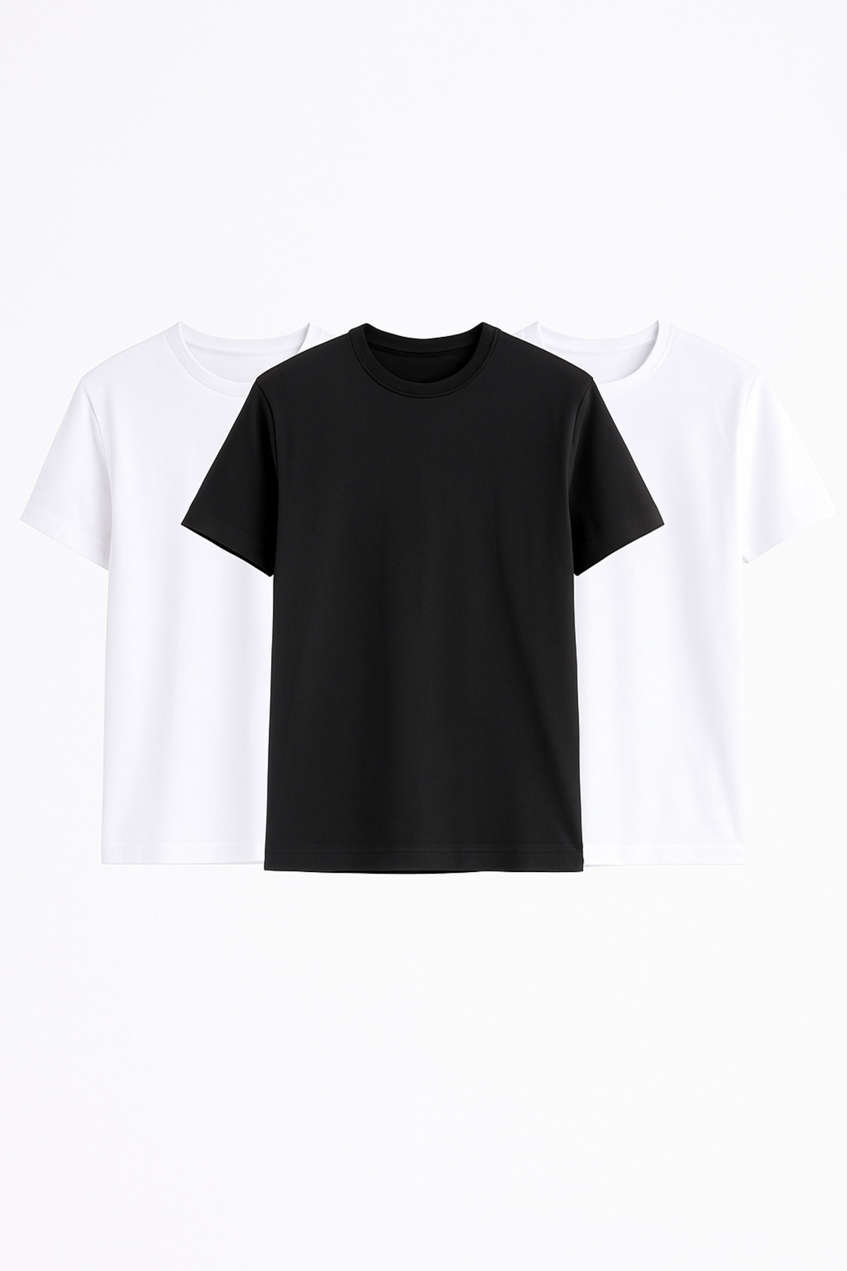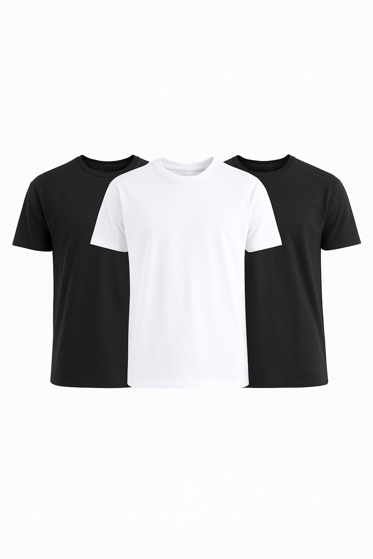 GMESG Erkek 3’lü Basic T-Shirt Seti – 2 Siyah + 1 Beyaz %100 Pamuk Suprem Kumaş Kısa Kollu