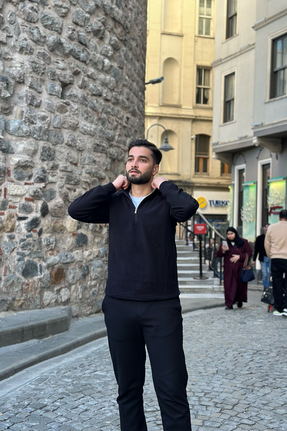 Gmesg’in fermuarlı siyah kazak modeli, sade tasarımı ve konforlu yapısıyla günlük kullanıma modern bir alternatif sunar. İki iplik kumaştan üretilen yapısı hafif ve yumuşak bir kullanım sağlarken, ön kısmındaki fermuar detayı pratiklik kazandırır.
