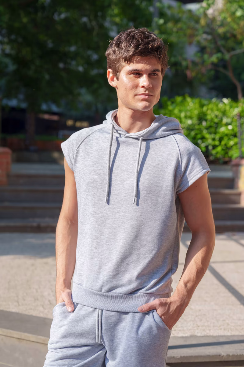 Dinamik stilin tamamlayıcısı! Üç iplik kumaştan üretilen kolsuz kapüşonlu sweatshirt ile özgürce hareket et.